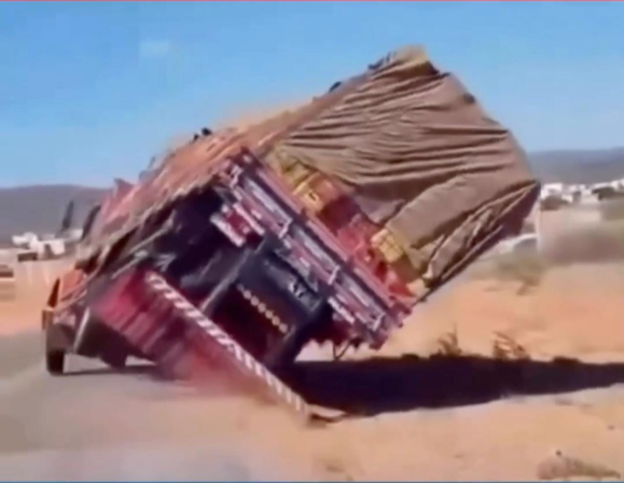 O momento do acidente foi registrado por um condutor que seguia logo atrás do caminhão. Nas imagens, é possível ver o veículo perdendo o controle e tombando às margens da pista.