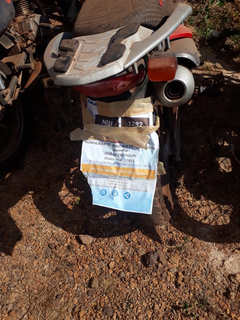 Uma motocicleta, Honda NXR 150 Bros, de cor vermelha, com placa NIH 1282, da Cidade de José de Freitas-PI foi recuperada pela Polícia Militar de Nossa Senhora dos Remédios-PI. Foi realizado um levantamento feito pelo comandante do Grupamento de Policia Militar, daquele município, com intuito de identificar os verdadeiros donos dos veículos. Total de 18 motocicletas foram recuperadas.