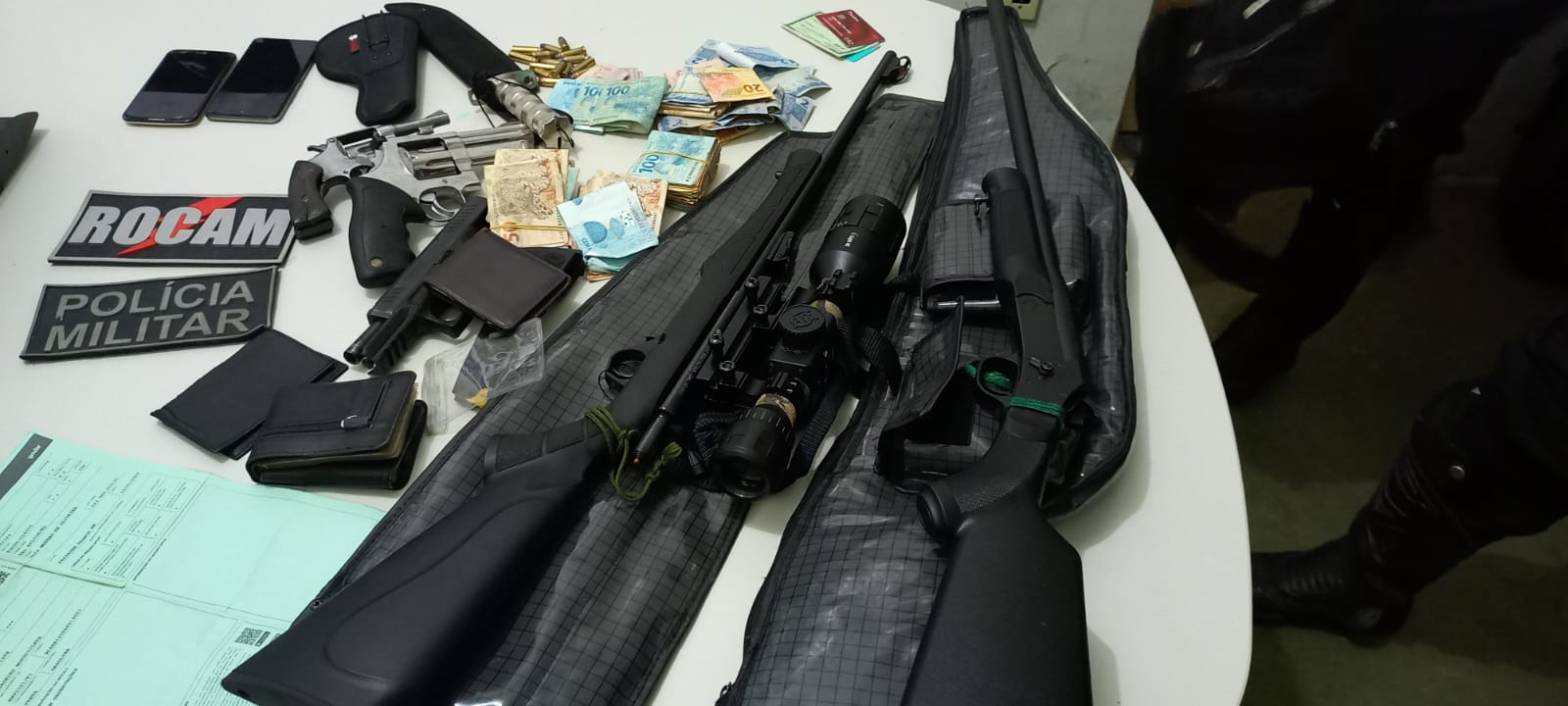 Dois homens, identificados pelas iniciais W.F.D e J.F.S.S, foram presos suspeitos de participar de um assalto a um escritório, na tarde de sexta-feira (19), em Floriano (PI). Durante a ação, foram apreendidas armas, munições, celulares e grande quantia em dinheiro. Com informações Clube News.
