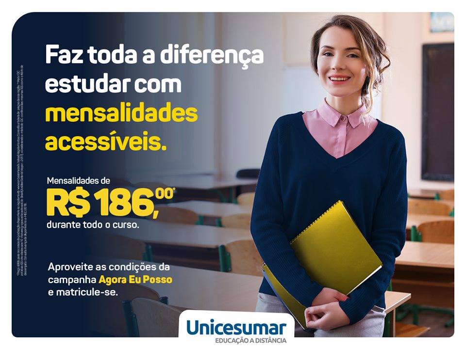 Aproveite as condições exclusivas da campanha Agora Eu Posso, você pode estudar com mensalidades de R$186,00 durante todo o curso na Melhor Educação a Distância do Brasil – Unicesumar Polo José de Freitas.