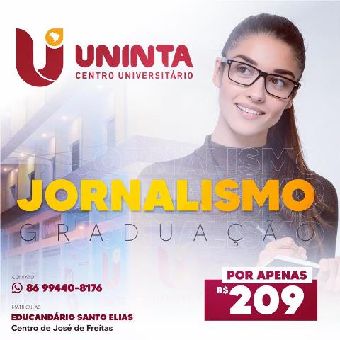 Por esses e vários motivos, convidamos você para fazer sua graduação em jornalismo no CENTRO UNIVERSITÁRIO UNINTA, pagando uma mensalidade que cabe no seu bolso, apenas *$209 aulas on-line, você estuda de onde estiver e o seu diploma é igual ao do presencial.